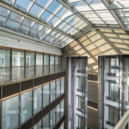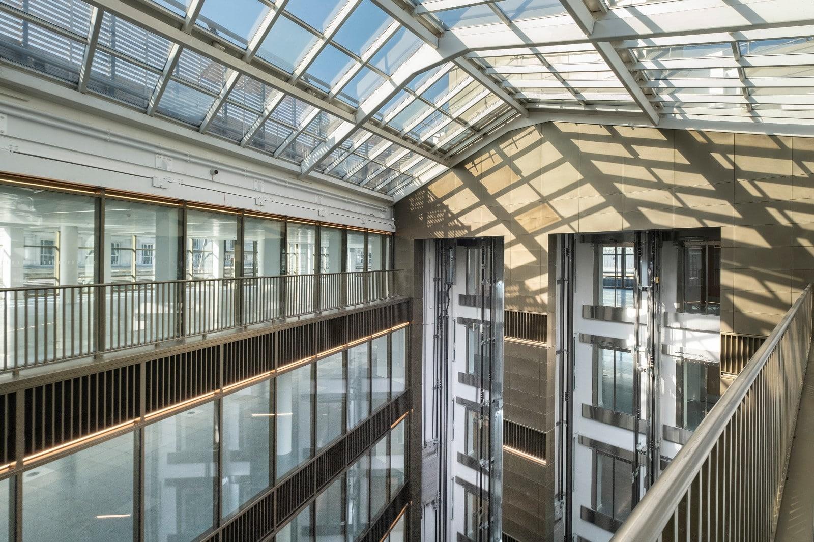The works consisted of retaining the existing envelope with general refurbishment to reception space and CAT A office accommodation, alterations to core configuration and atria infills, and replacement of capital plant plus new rooftop terrace.