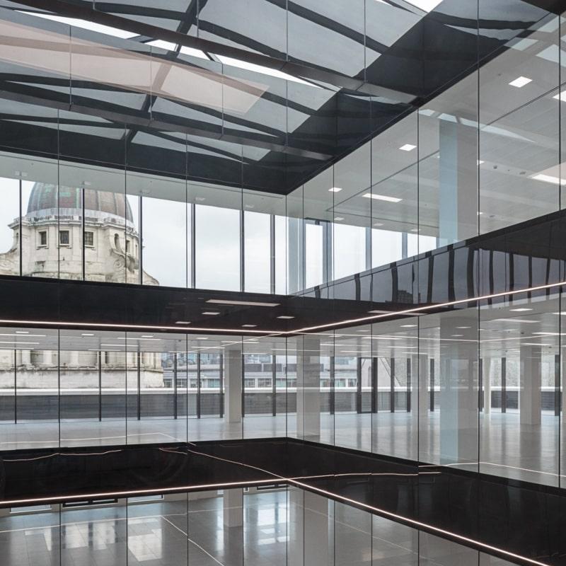 An immaculate reinvention of a substantial office building opposite the Central Criminal Court in the diverse and dynamic heart of London. The scheme including reconfiguration of core areas included a new 9-storey internal atrium glazed fixed rooflight overhead.