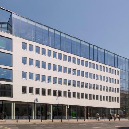 This redevelopment offers 5 floors of contemporary, bright office space with panoramic views and good connections to London’s West End, London City and Heathrow airports.