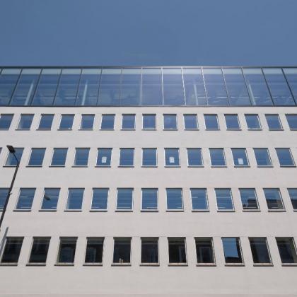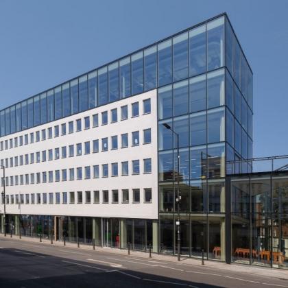 Bringing together the existing building and new extensions into a more coherent whole, providing 5 floors of contemporary, bright office space with panoramic views
