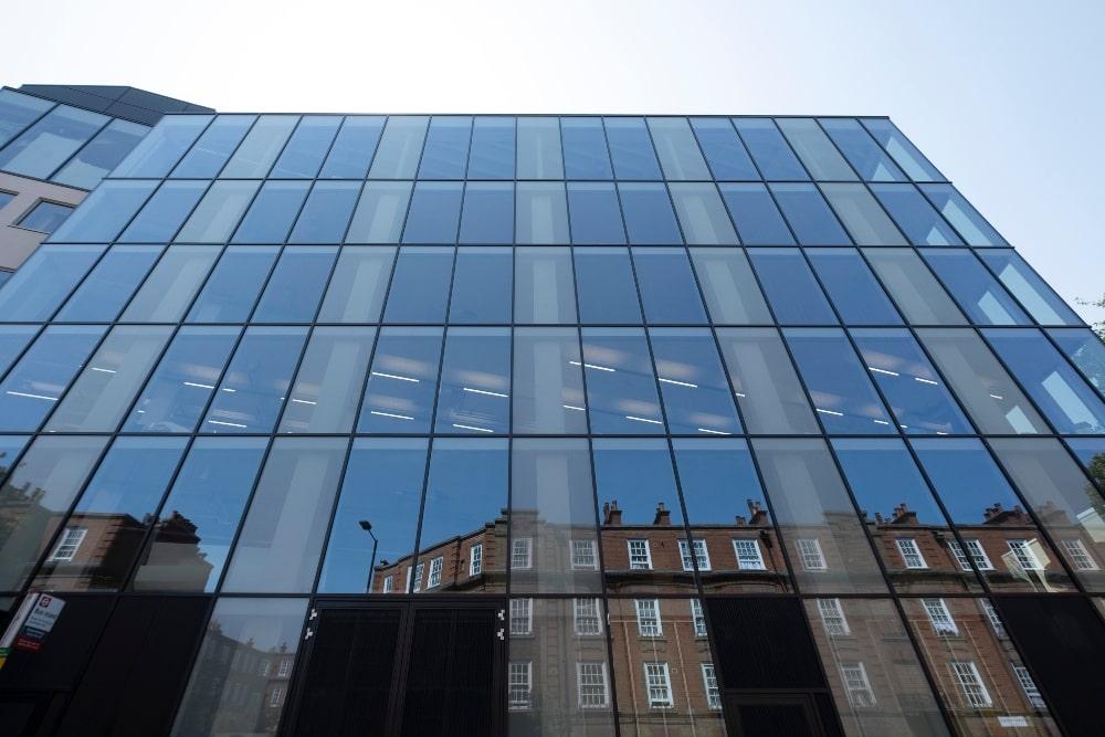 Vision Arch commenced works by providing a 2m x 3m mock-up of the curtain walling, to present the various glass types and the connection to the floor slab. Various testing was carried out to provide thermal analysis and condensation calculations, PPC coating and anodising testing and desktop acoustic studies.