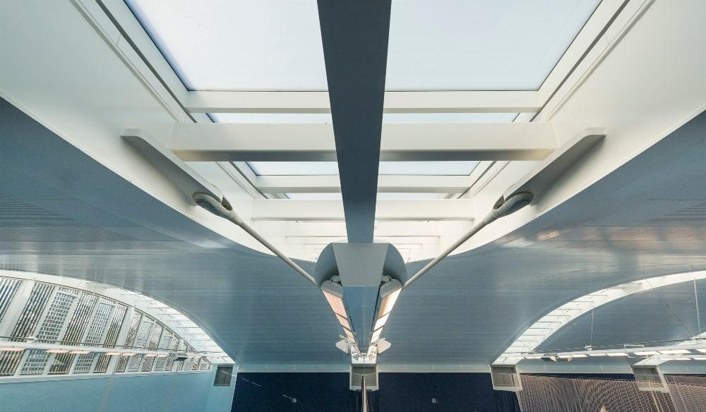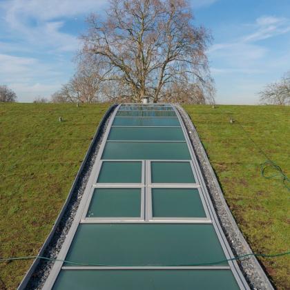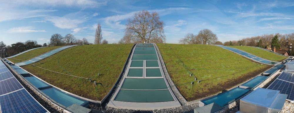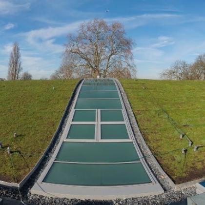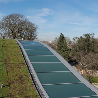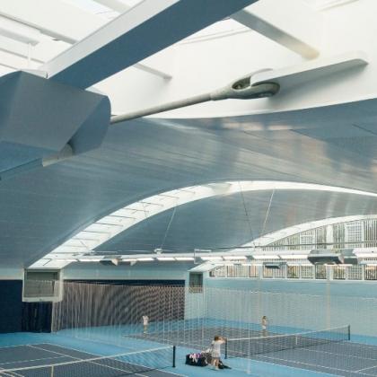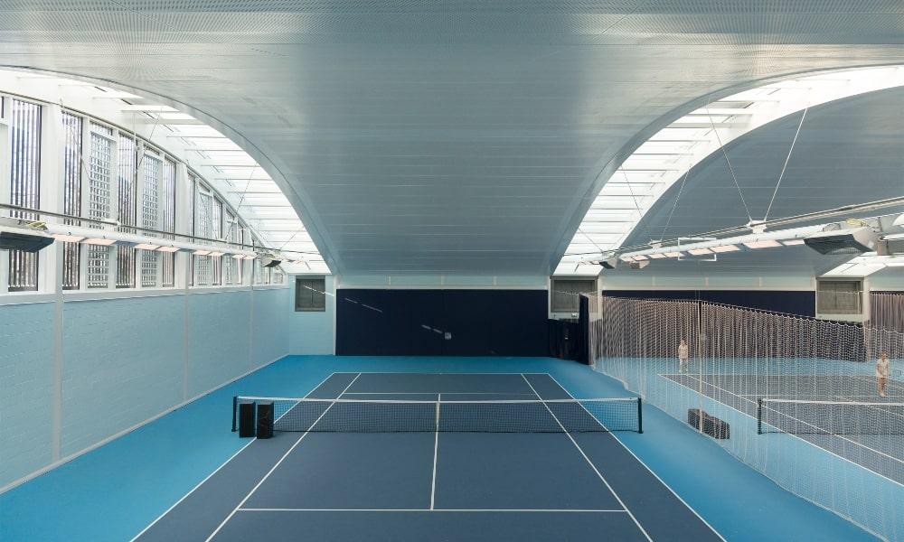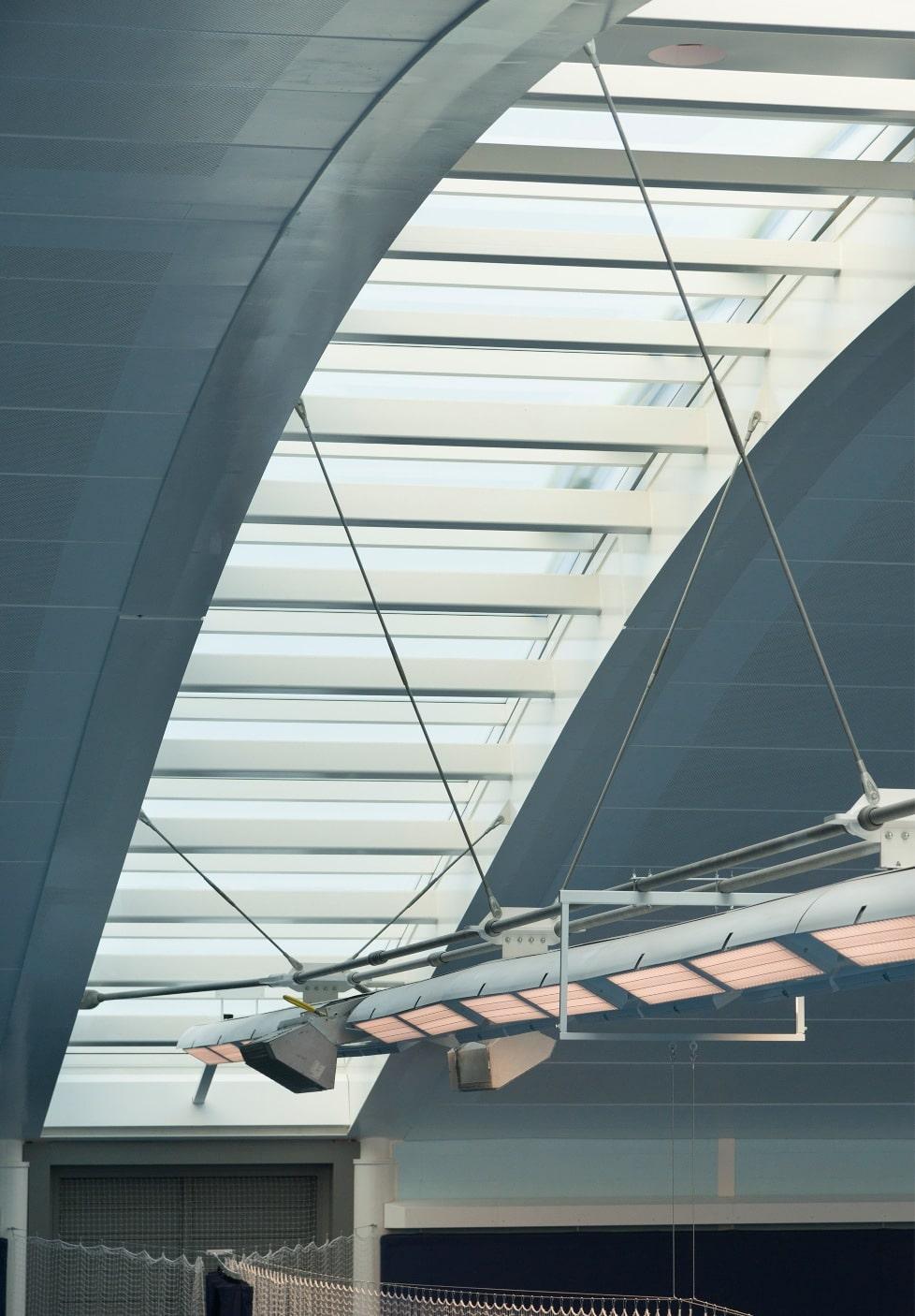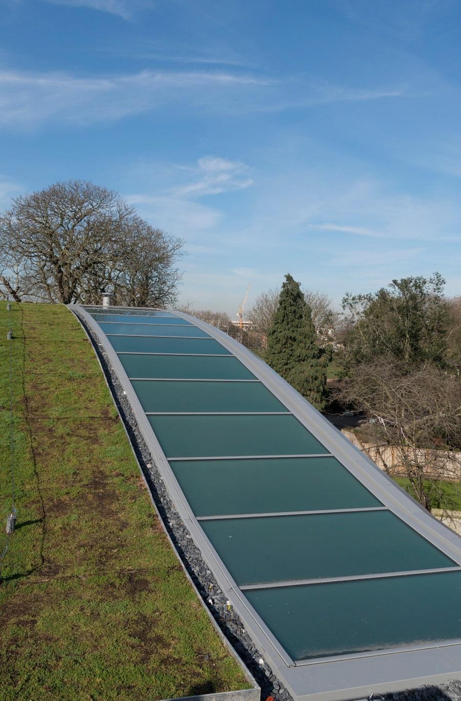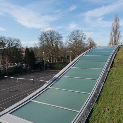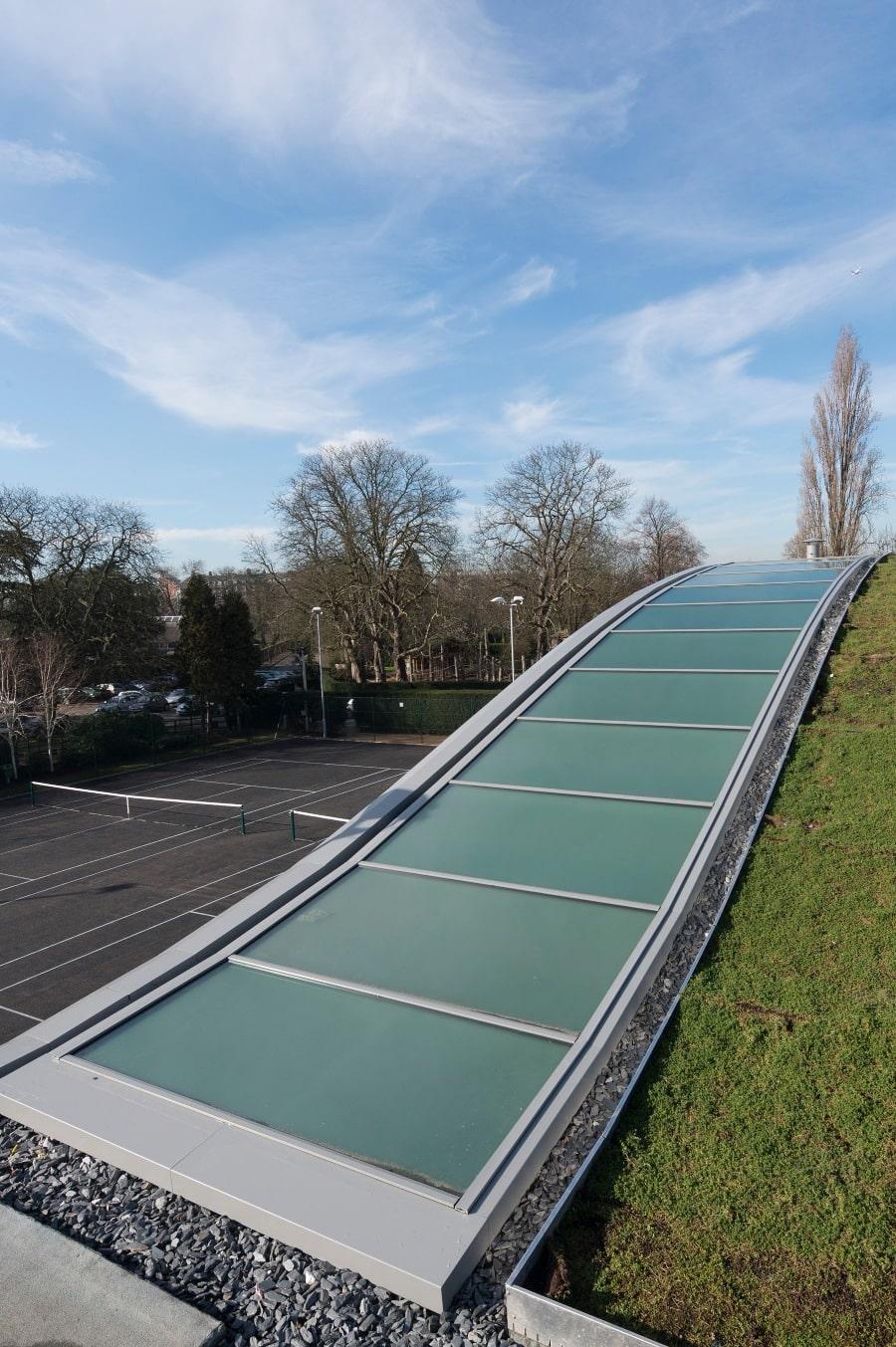 Nestled within the insulated vaulted sedum grass roof are 5 rooflights spanning 37m x 3m between each court, adding not only an impressive design feature but also all-important natural light to the courts below.