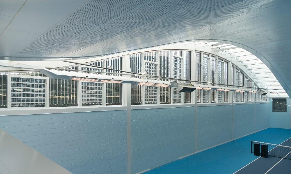 Married with external vertical glazing, glass louvres and automated vertical Brie Soliel both players and guests can enjoy an enhanced sporting experience