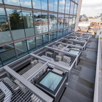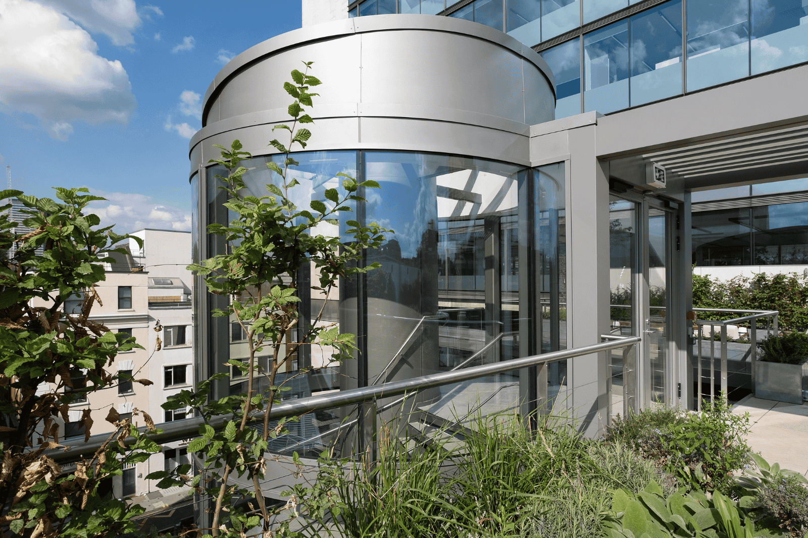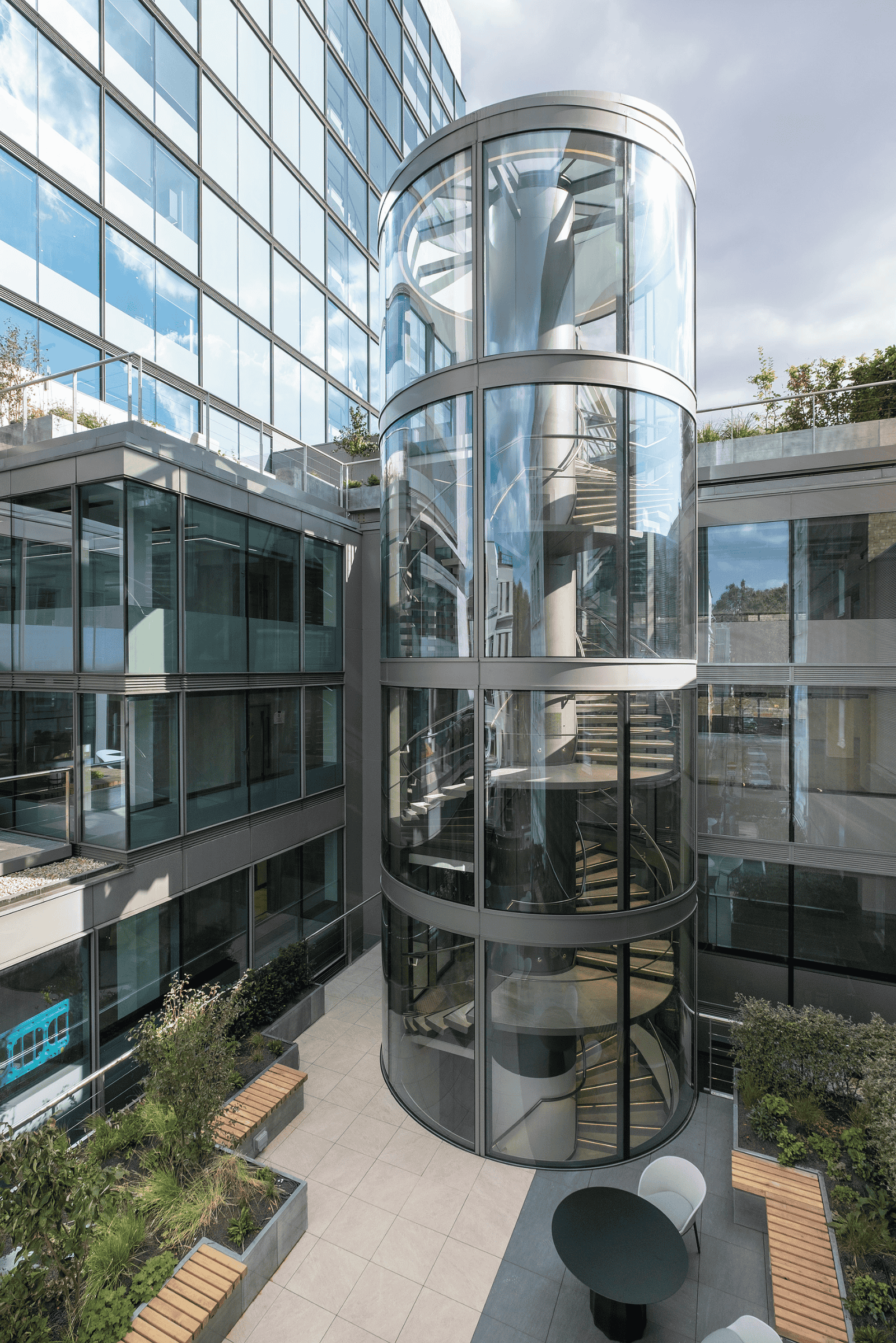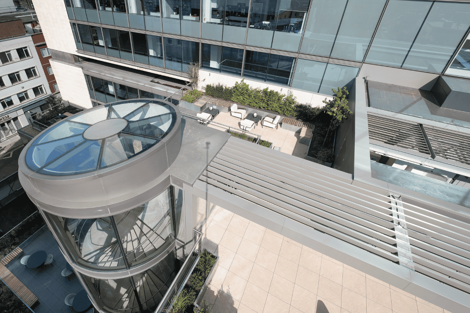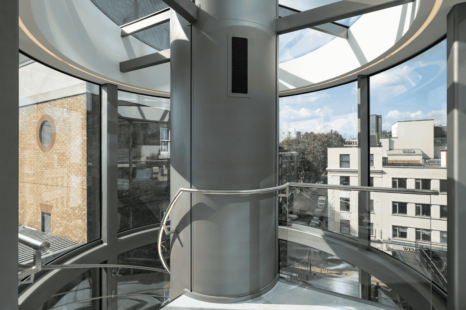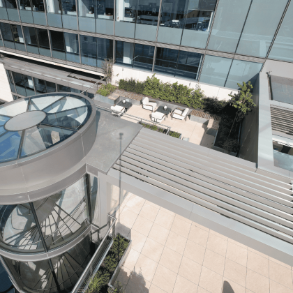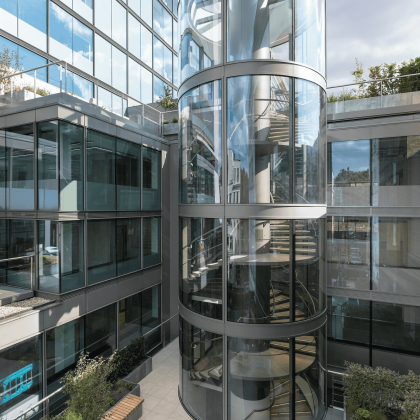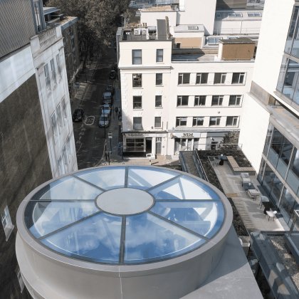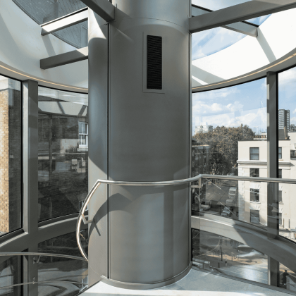 Vision Arch were employed to carry out the design development, supply, fabrication and installation of the motorised rooflight within the Tower, a glazed feature staircase within the Podium and the reception curtain walling.