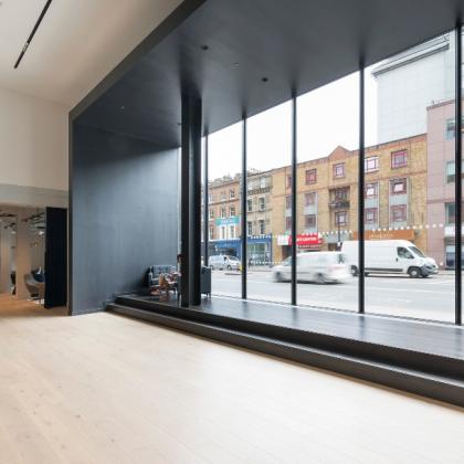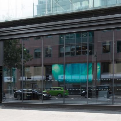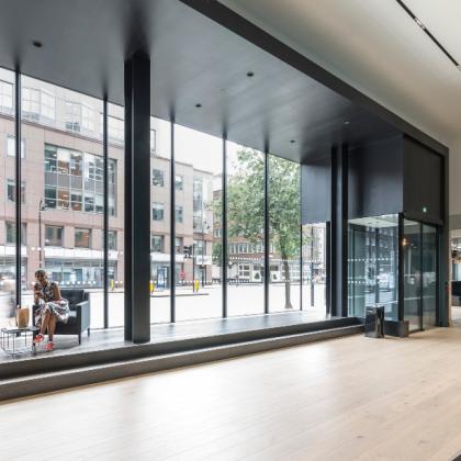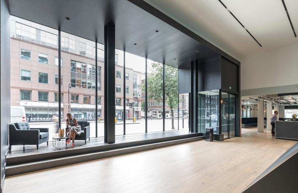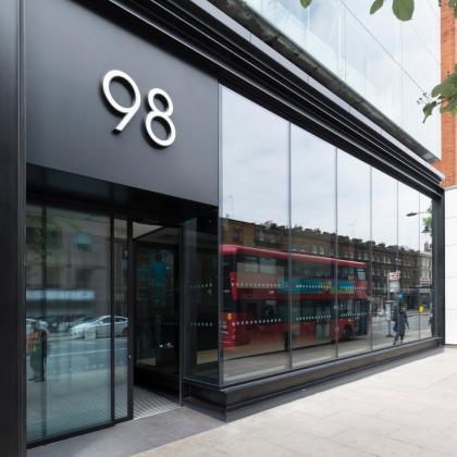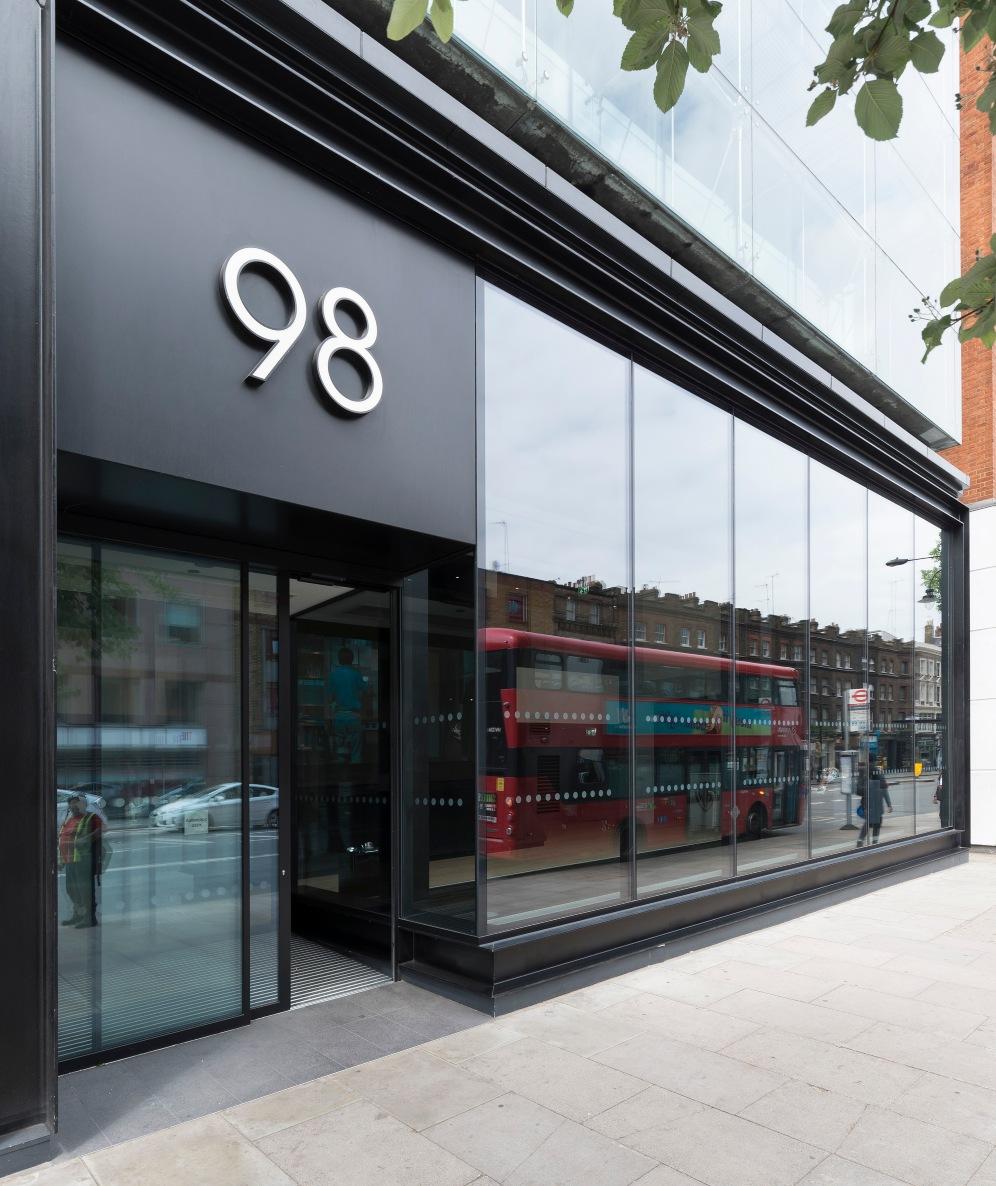 Bespoke structural glazing to Façade at ground floor and sliding doors and a new lobby entrance with bespoke signage.