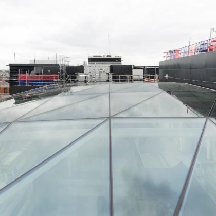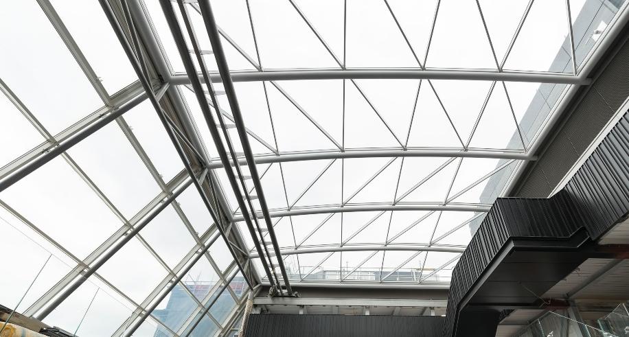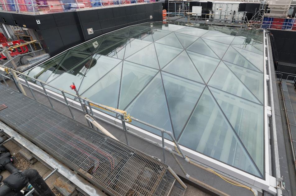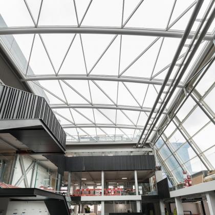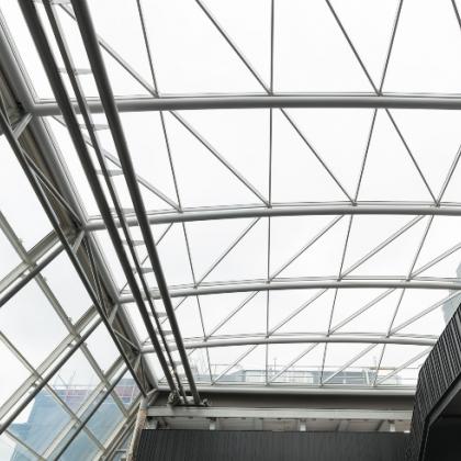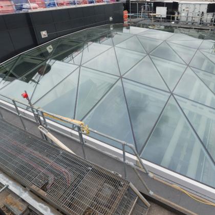 - Glass gridshell atrium roof utilising Schuco Jansen sections