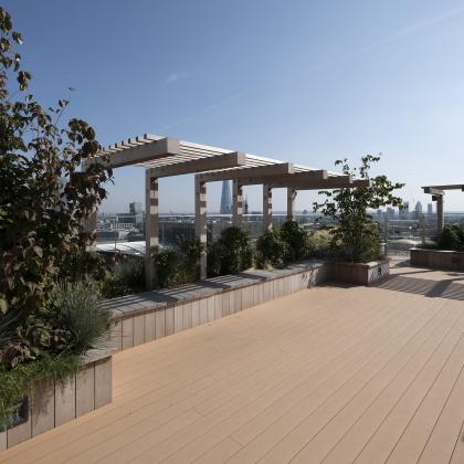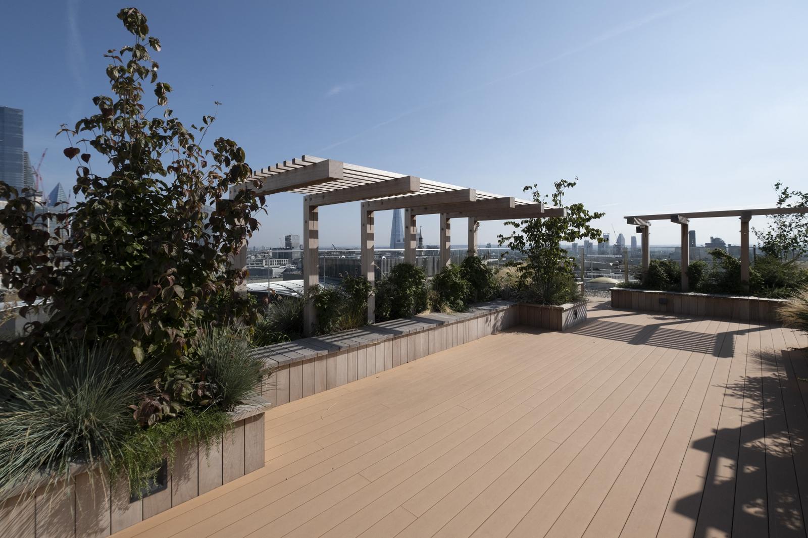 The scheme comprises a new external facade at street level, new entrance and expanded reception area with café and lounge spaces. The refurbishment included 12 floors of CAT A office facilities, a rooftop extension and a new roof terrace.